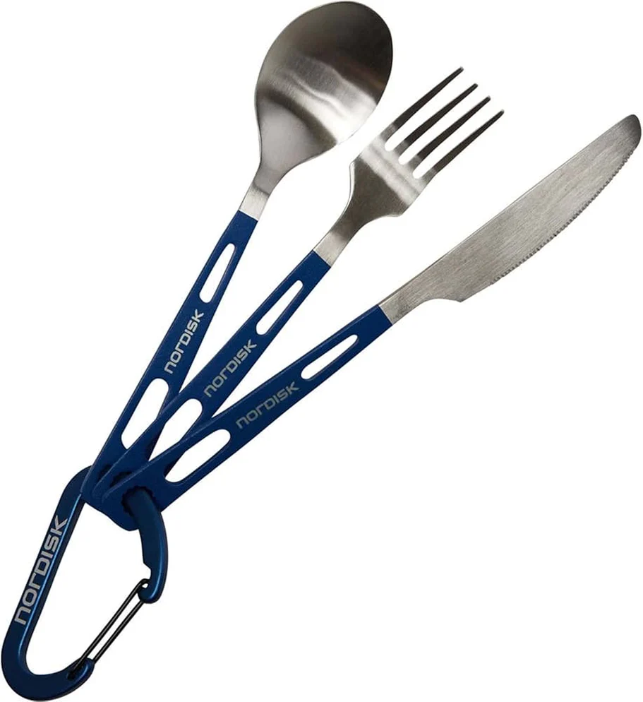 ชุดช้อน ส้อม มีด ผลิตด้วยสแตนเลส มาพร้อม Carabiner สะดวกในการพกพา เหมาะมากสำหรับการใช้งานในแคมป์